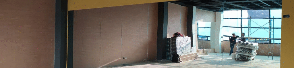 Espejos grandes para gimnasios, estudios de danza o espacios comerciales. Instalación segura y profesional.